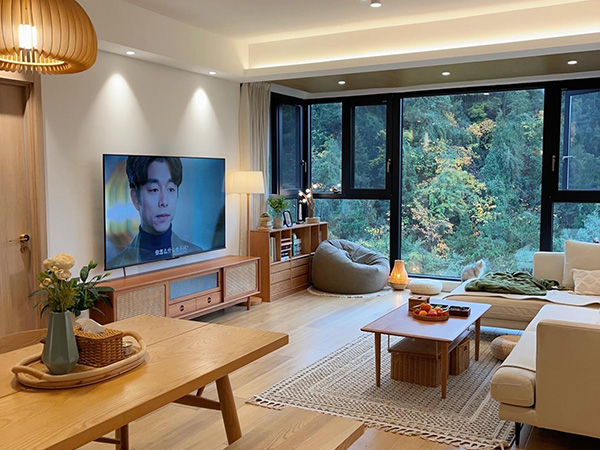 客廳:三層窗簾1.客廳選購(gòu)考慮要素客廳是較大的休閑活動(dòng)區(qū),客廳光線的好壞直接影響家居生活品質(zhì)。客廳窗簾在選購(gòu)時(shí)除了考慮裝飾效果外還應(yīng)考慮私密性、舒適度、自然采光等因素。2.推薦款式在客廳安裝一個(gè)三導(dǎo)軌的窗簾軌道,外層裝唯美仙氣的紗簾,可以讓家人充分享受陽(yáng)光;中間層裝半遮光的麻/聚酯纖維混紡薄簾,在待客時(shí)使…